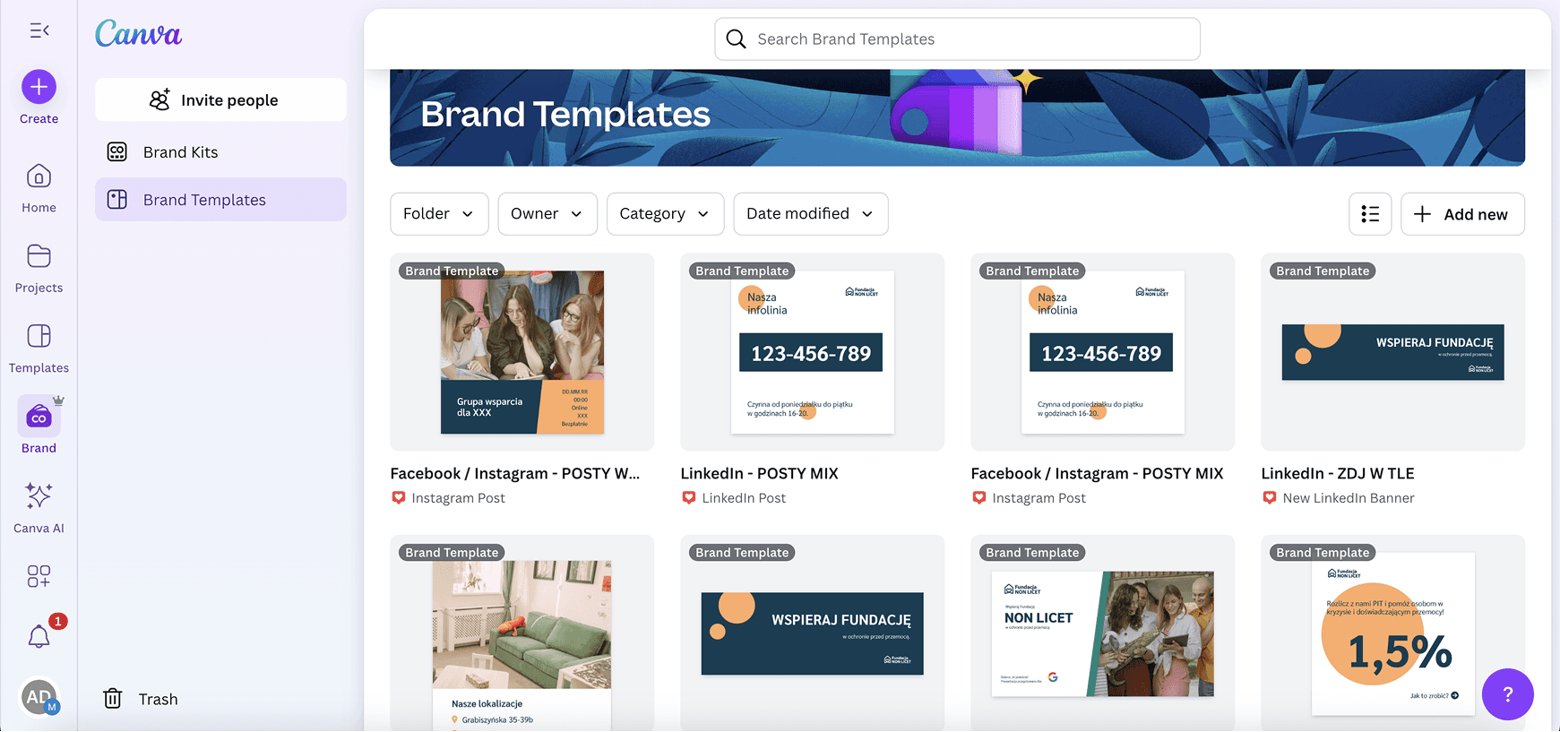 Projekt nie kończył się na samym brandbooku. Przygotowaliśmy również zestaw materiałów, które fundacja może wykorzystywać w codziennej komunikacji: